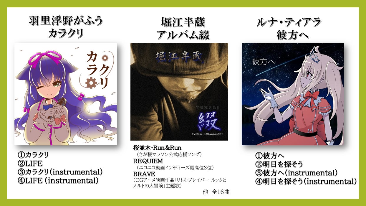 【堀江半蔵アルバム「綴」&羽里浮野がふう「カラクリ」&ルナ・ティアラ「彼方へ」 3枚セット】