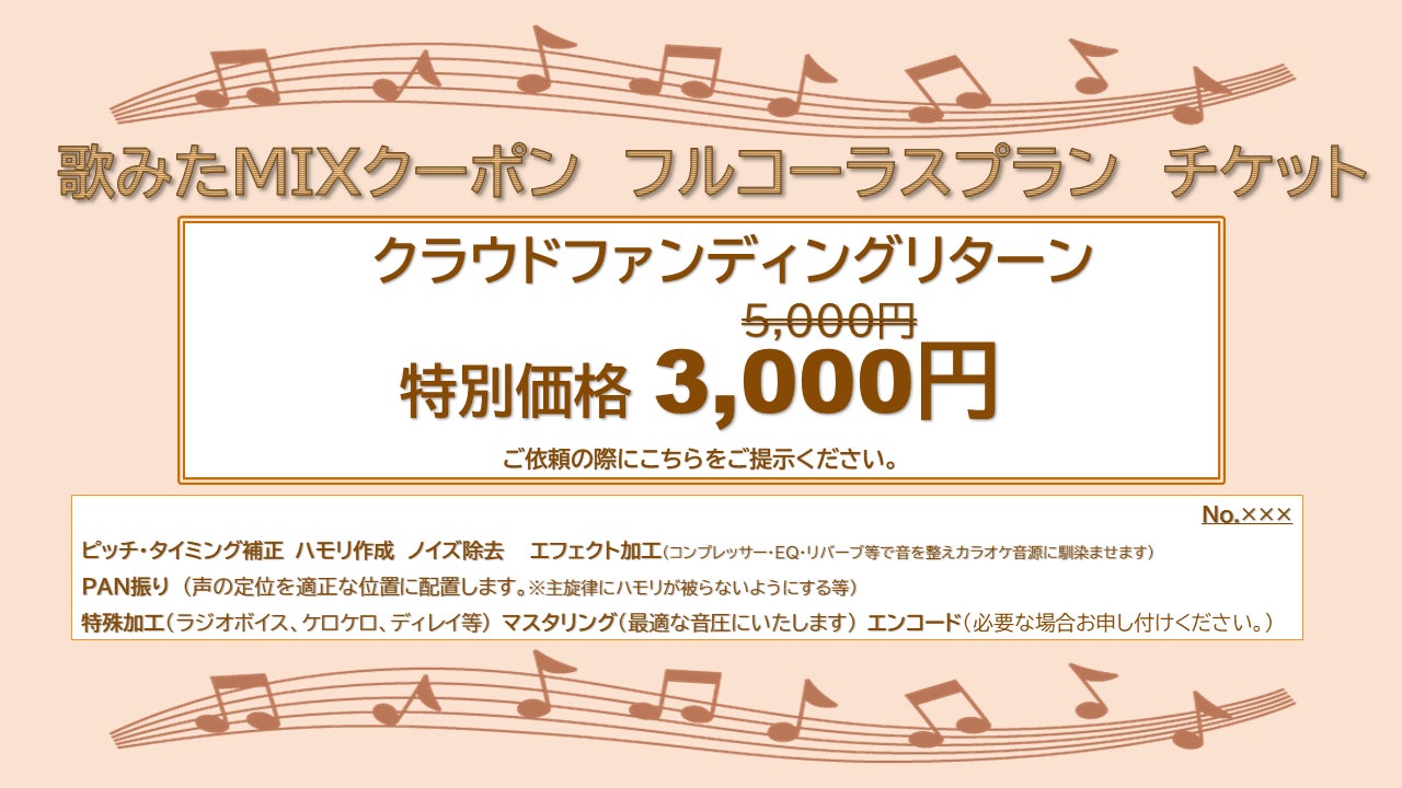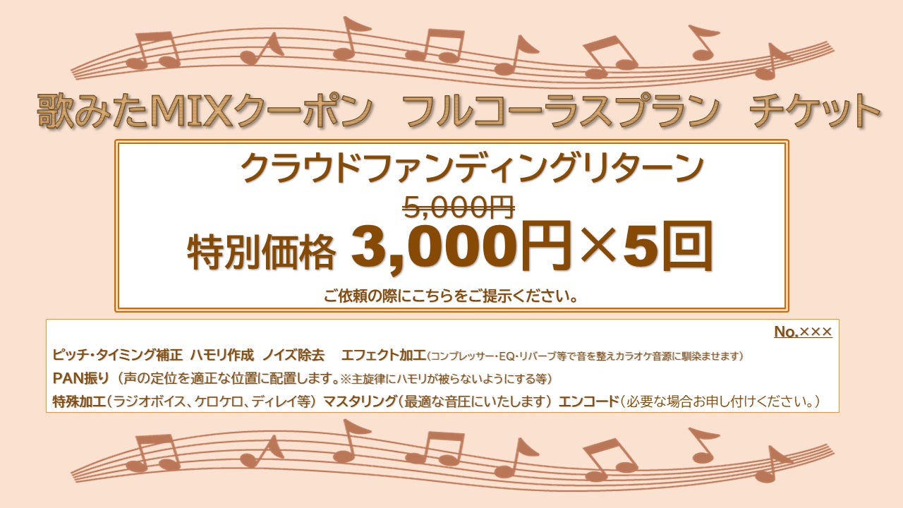 【歌ってみたMIXご依頼フルコーラスコミコミコース40%OFFチケット 5回回数券】
