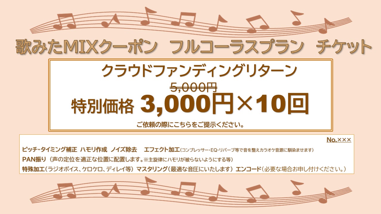 【歌ってみたMIXご依頼フルコーラスコミコミコース40%OFFチケット 10回回数券】
