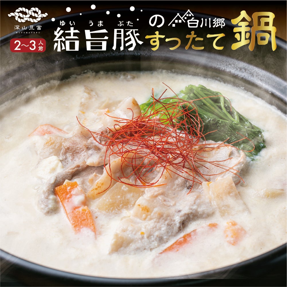 生まれも育ちも白川郷のブランド豚「結旨豚(ゆいうまぶた)」と郷土食材「すったて」を一緒に楽しめる鍋セット「結旨豚のすったて鍋」が完成しました。