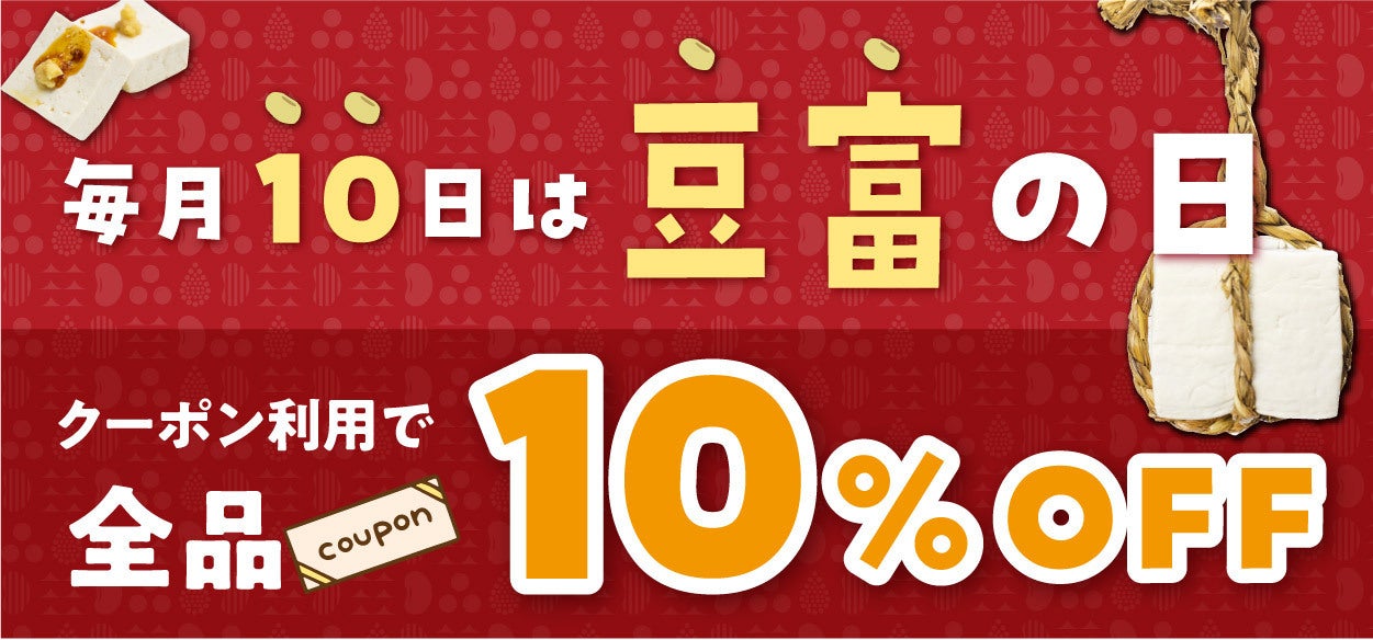 今月も開催!毎月10日は豆富の日 クーポン利用で全品10%OFF!!