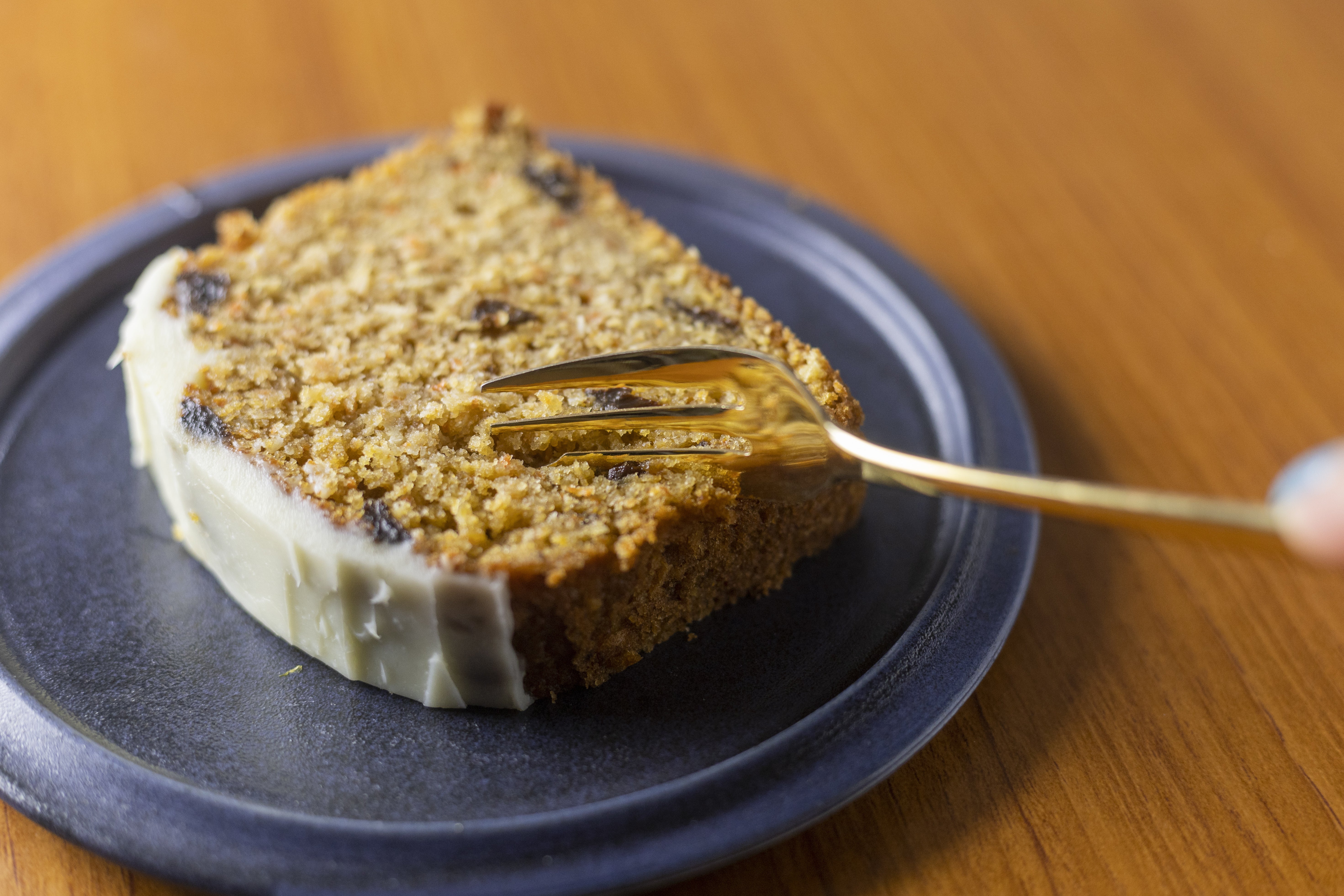 イギリス生まれのおキャロットケーキは人参の甘みとほんのり効いたスパイスが特徴。そこにおからをつかうことで、しっとりやわらかく、大豆の甘みがプラスされたケーキに。