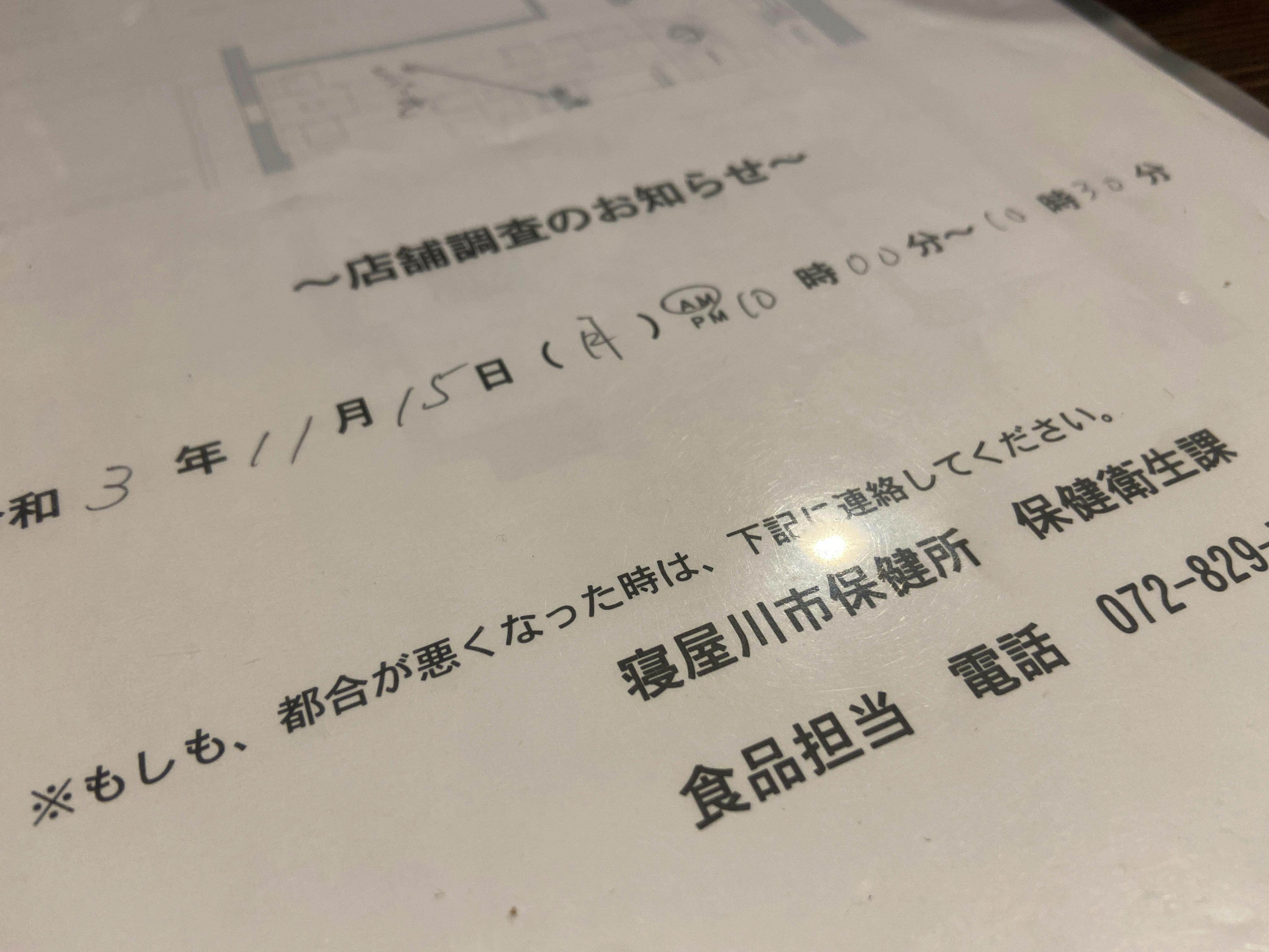 昨日のランチ終了後、営業許可の申請の為、寝屋川市の保健所に行ってきました。