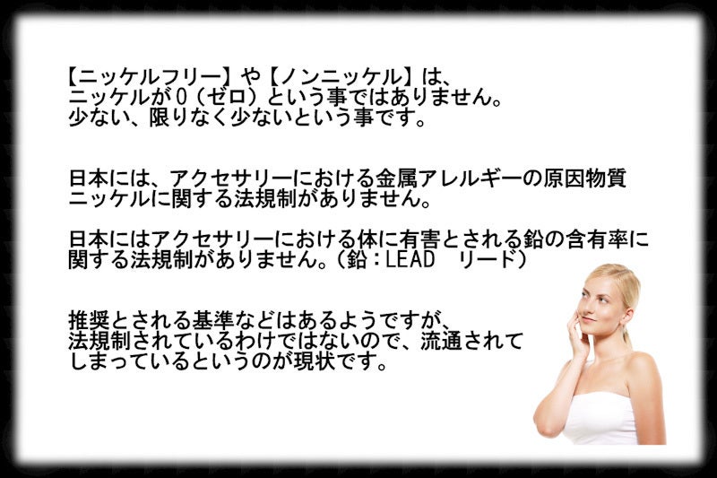 *他社様のアクセサリーのすべてが、ニッケルフリーではない、という事はございません。