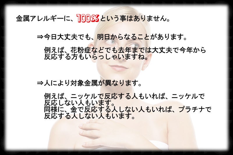 金属アレルギーに関しては以下の事を理解していただくことが非常に重要です。はじめによくお読みください。