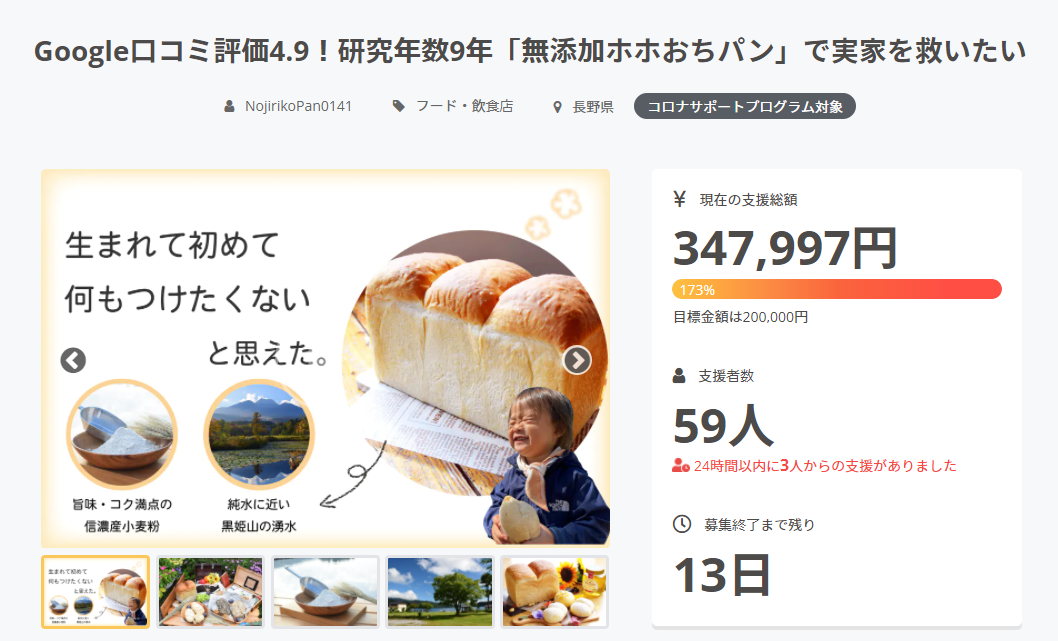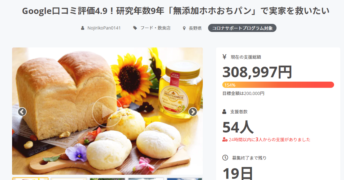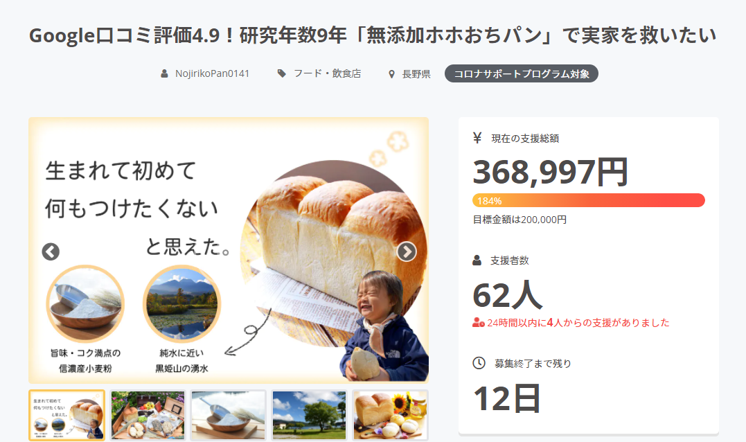 こんにちは、みっちゃんです(^-^)/ クラウドファンディングの期限まであと20日を切りました。3分の1の期間がすぎましたが、みなさんのお陰さまで、見事30万円に到達することができましたぁぁぁ〜!!もう本当に夢みたいです(*´꒳`*)本当に本当にありがとうございます!!!こんなに多くの方に支えられて、応援してもらっているかと思うと、心も目頭も熱くなってきます。皆さまの期待に応えられるよう、残りの期間も頑張りますので、どこまで行けるのか、私の挑戦を是非温かく見守っていて下さい。皆さまの存在、「皆さまが応援してくれている」と思うだけで、とても心強く励まされます(*´ー`*)本当にいつもいつもありがとうございます!!美味しいパンをお届けしますので、もう少し待っててね〜(^-^)/