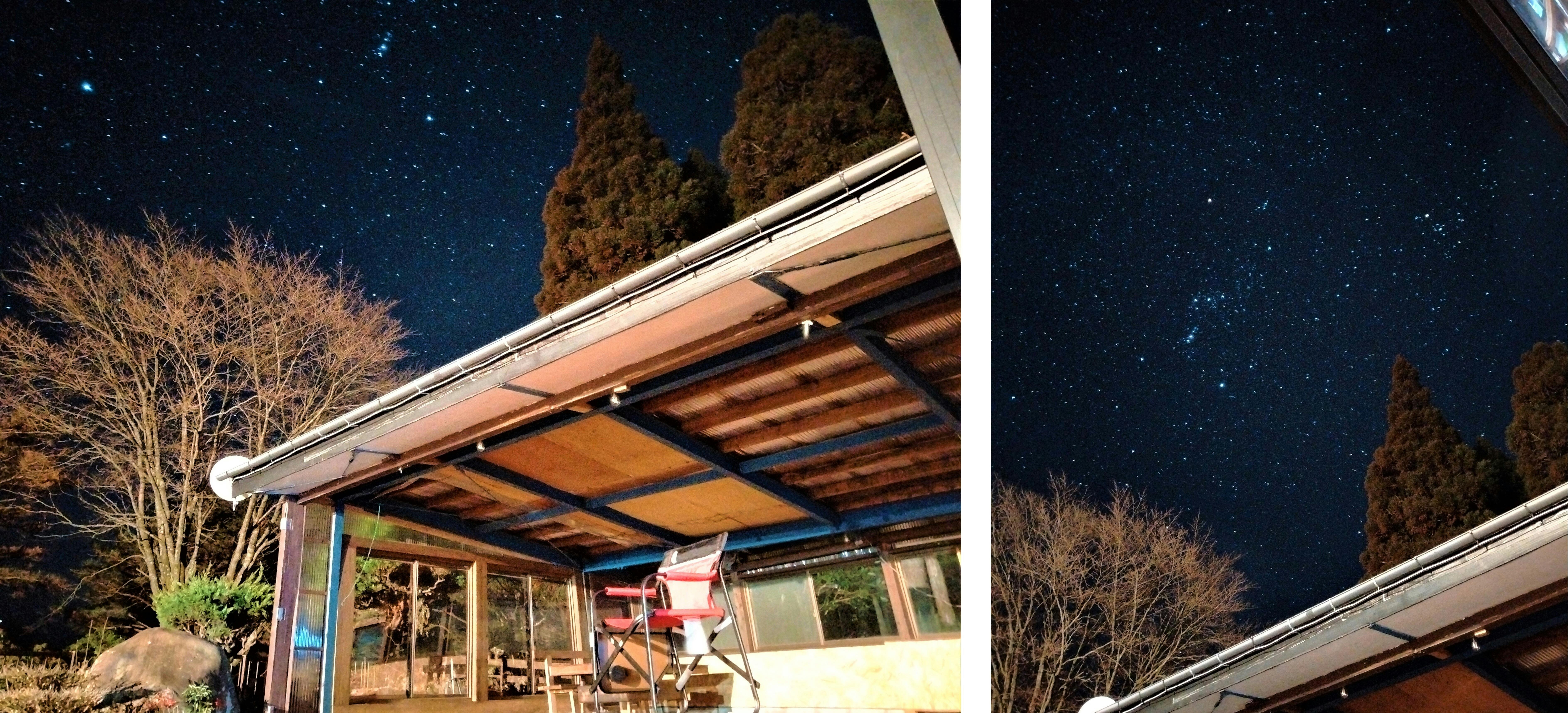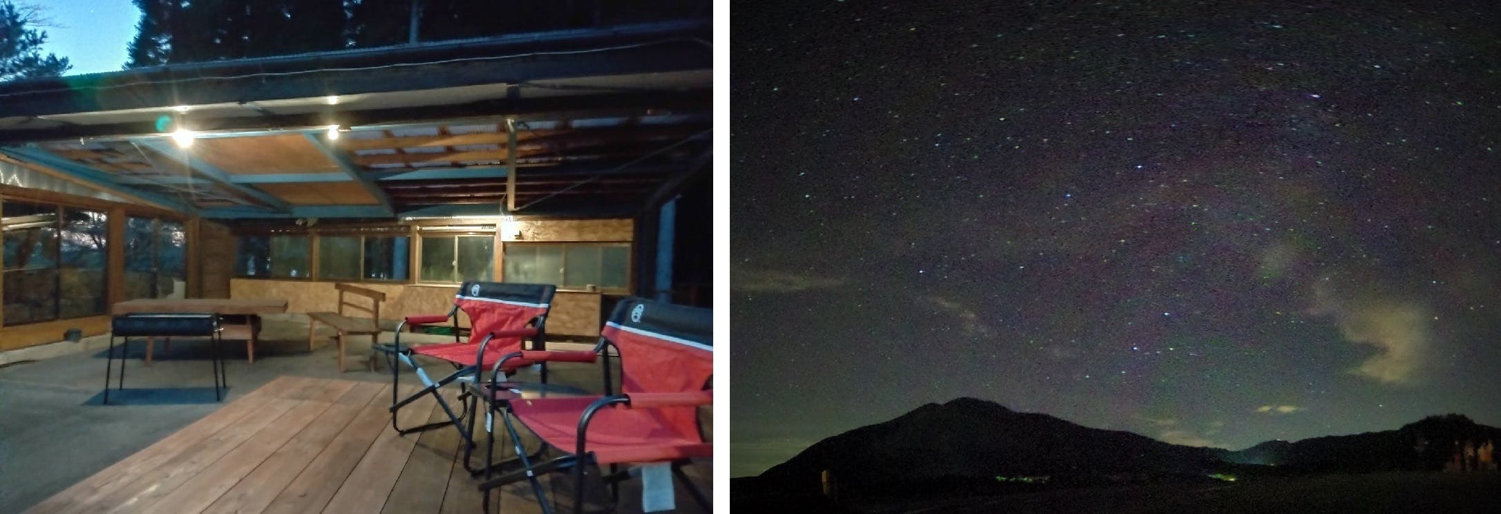 星空の下に、父がぶら下げた裸電球の明かりで焼いて食べるお肉と野菜。