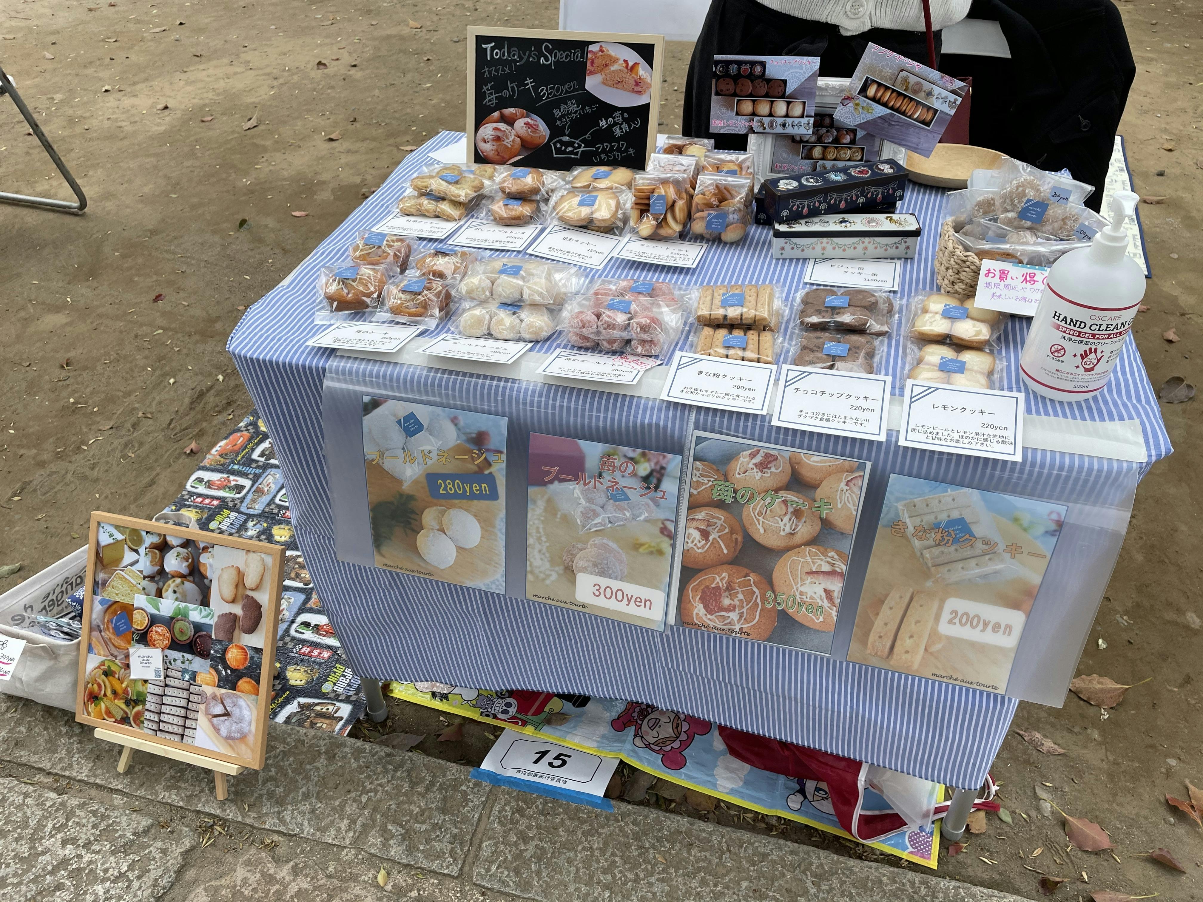 そこからどうすればお客様に買って頂けるかを考え、お客様と対面で販売できないかを考えたところフリーマーケットでは食べ物の販売が可能 (禁止のところもあります) ということで出店してみようと挑戦していました。ベイクドタルトは取りやめ、お客様が手に取りやすい低い価格帯に設定したり、選ぶ楽しさを提供するため8種類ほどクッキー用意したり目玉商品のカップケーキなどを少量用意したり、工夫し販売してきました。