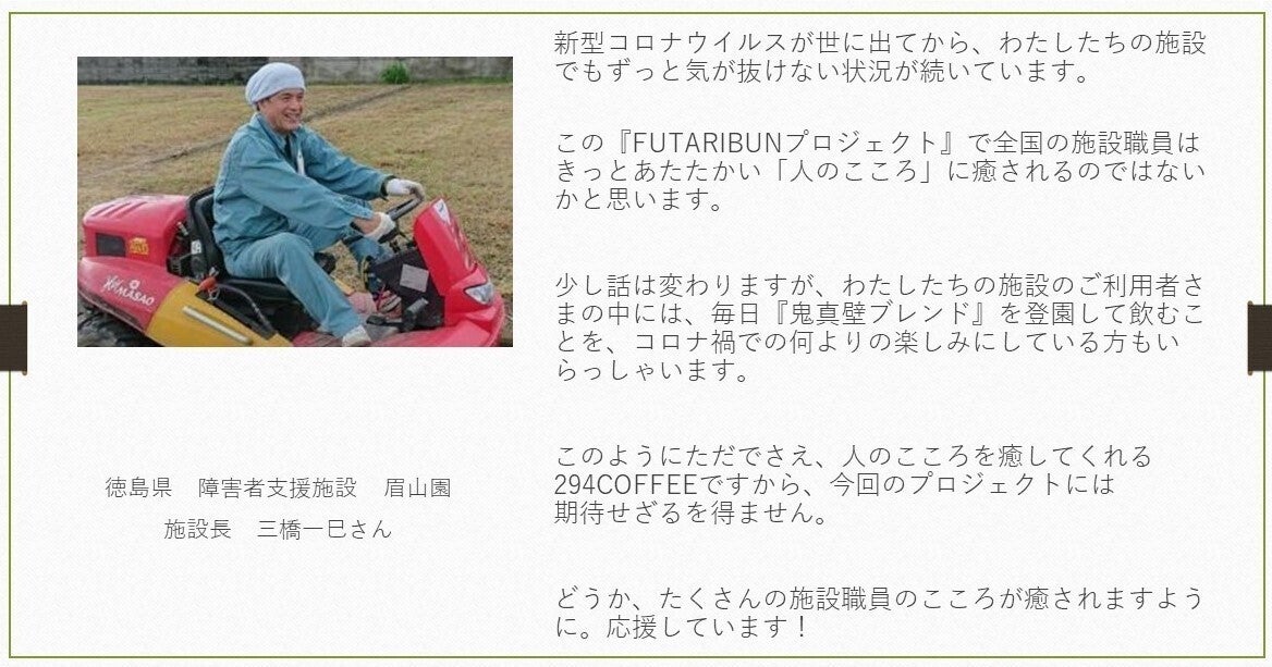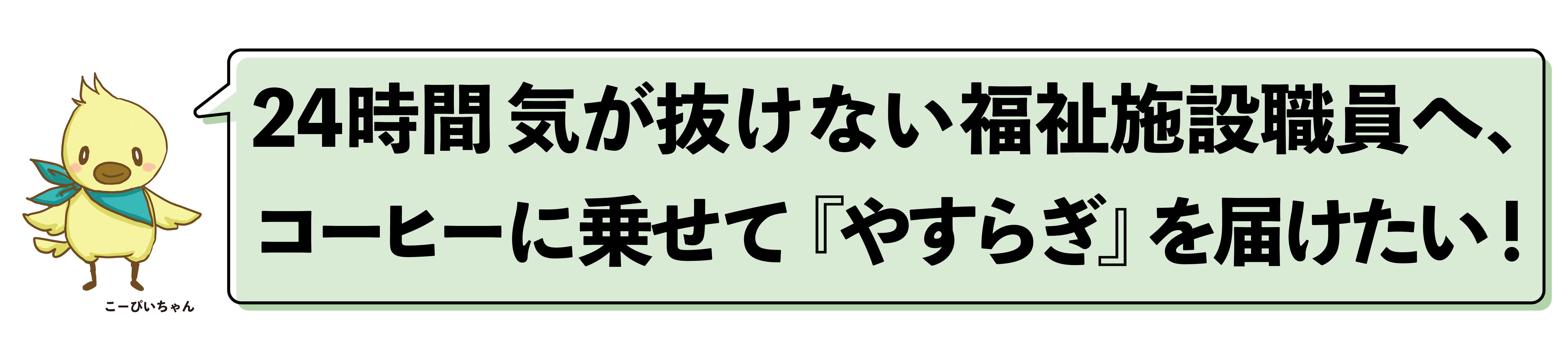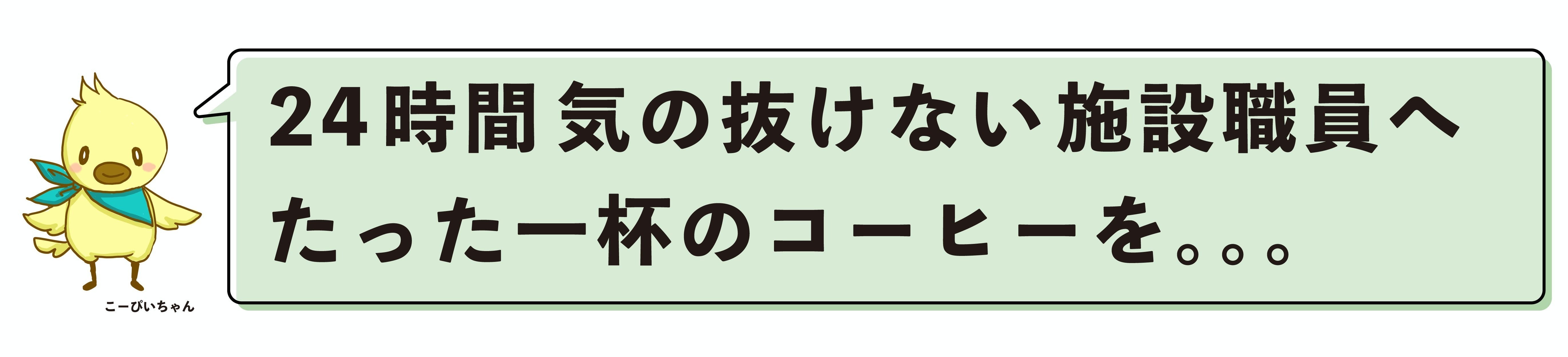 それと同等額のコーヒーを全国の支援施設で働いている職員にお届けします。