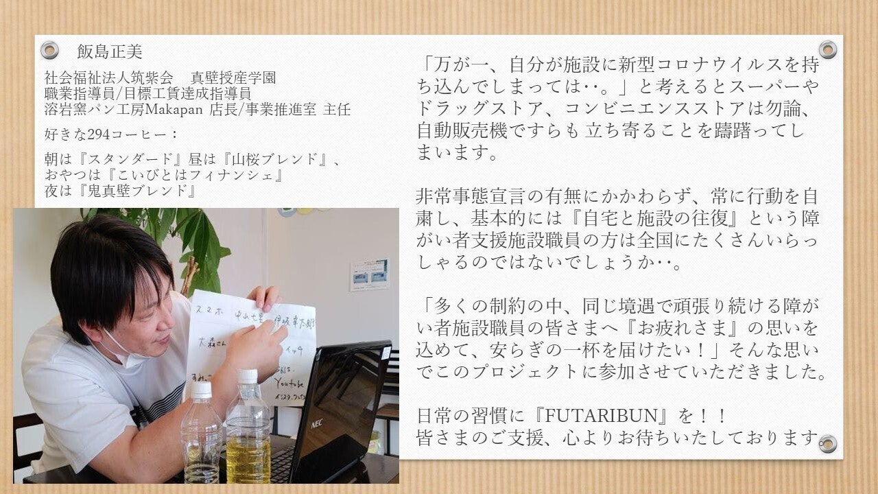 『一杯分は支援して下さった方へ、もう一杯分はすべての福祉施設職員へ』