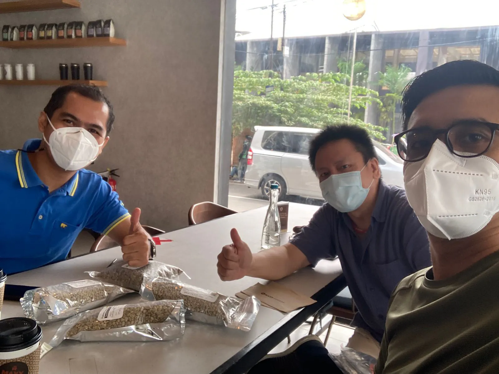 この写真はインドネシア現地にて繋がりのある法人代表(真ん中の方)自ら品質の良いコーヒー豆を今後さらに、皆様にお安くご提供出来るよう業者さんや産地にて交渉しているところです。