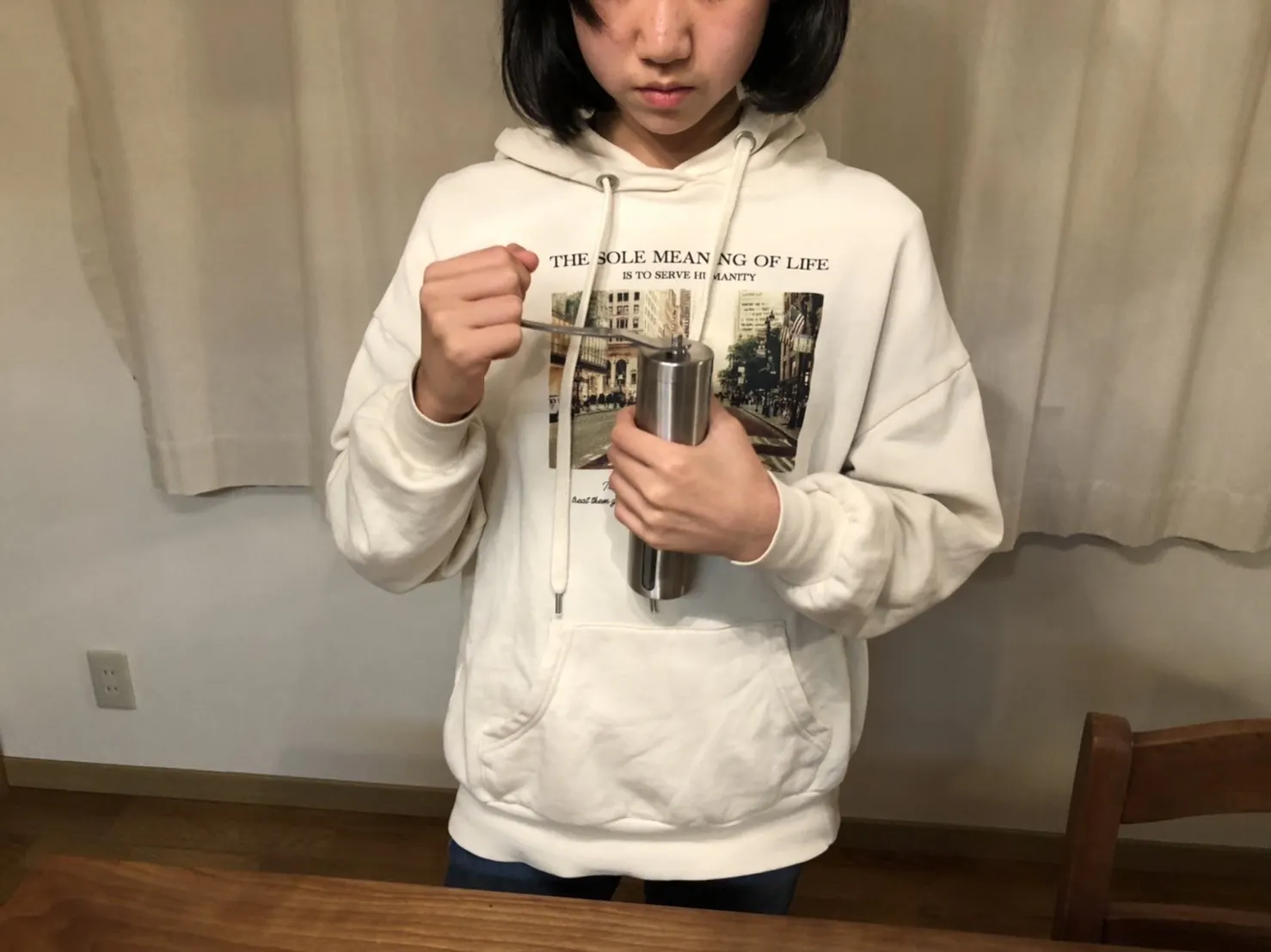 昨日の続きですが、焙煎後も知り合いのお子様一人で手動ミルにて豆を粉にされたそうです…