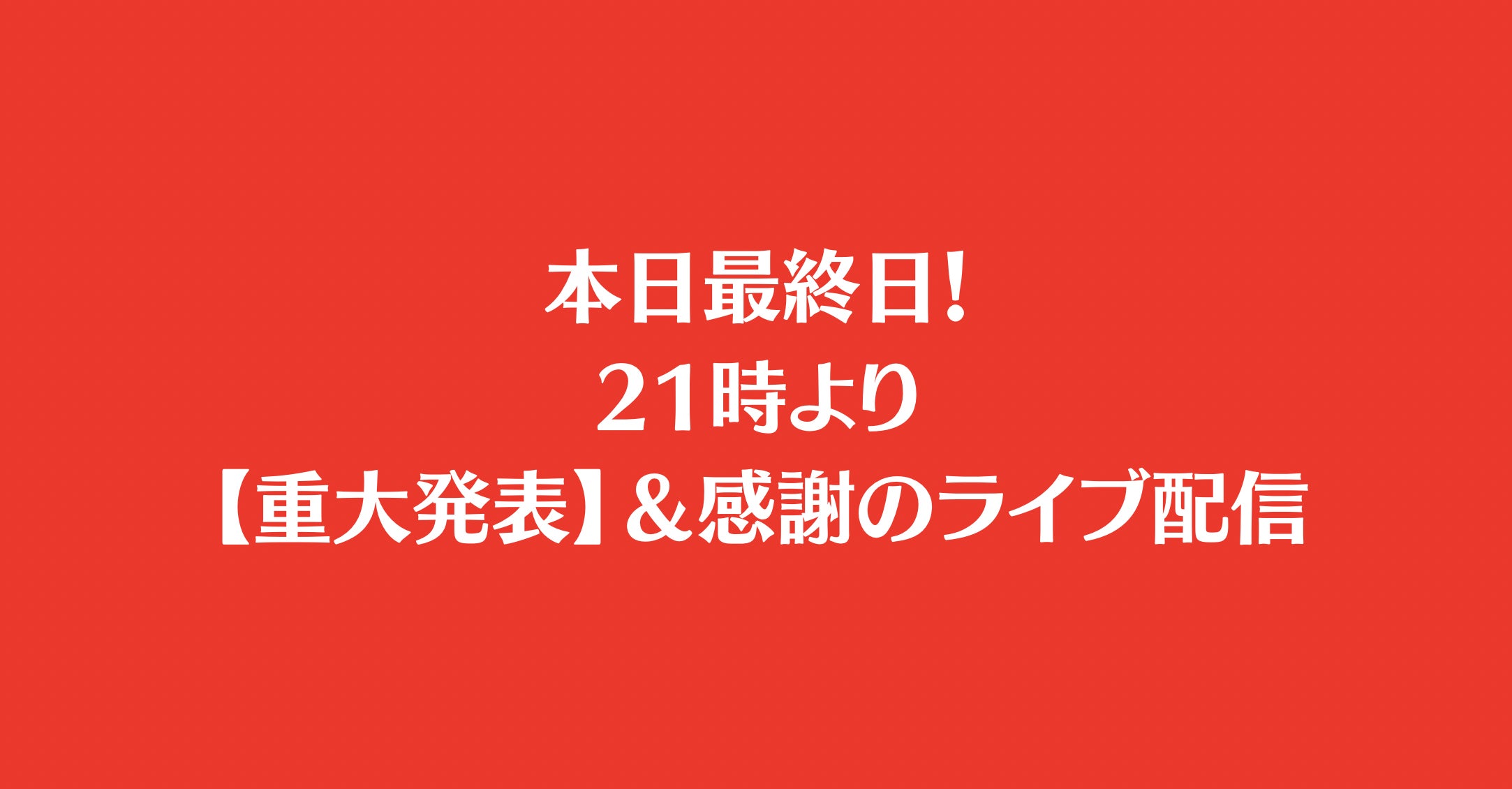 本日21時に【重大発表】ファイナルライブ配信します。