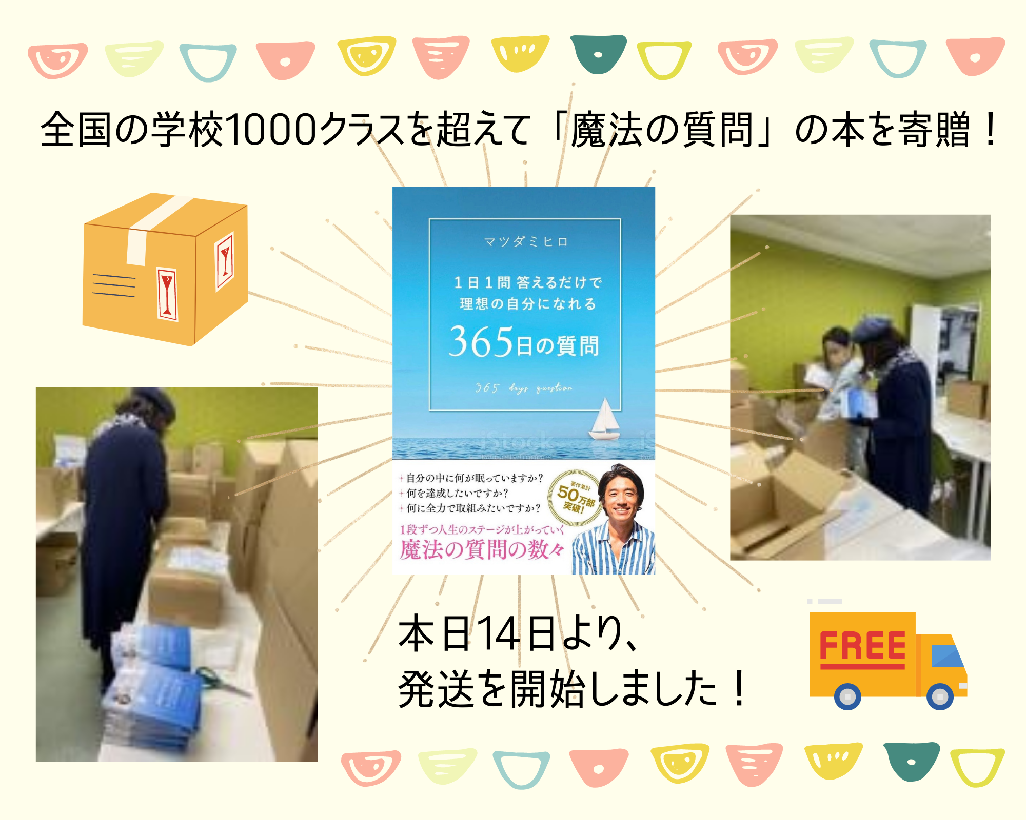 魔法の質問の本を寄贈させていただく準備がととのいました。