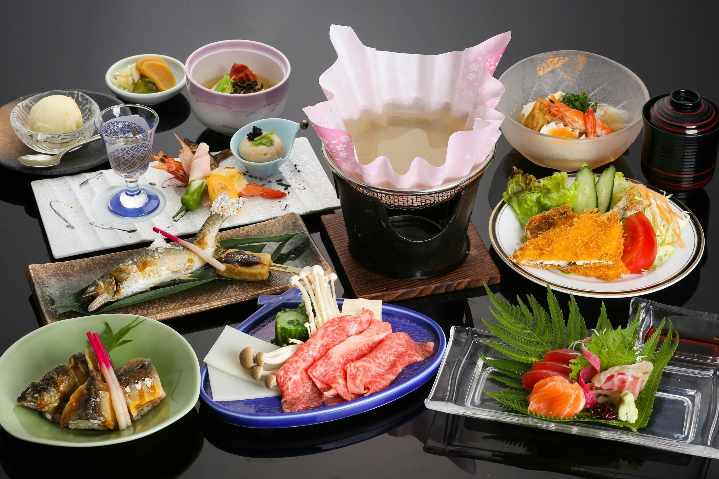 夜食では、馬瀬川で育った天然鮎のフルコース【夏季限定】や、特Aランクの飛騨牛のすき焼き(もしくは、しゃぶしゃぶ)コースなどを用意しており、ゆったりとくつろぎながら地元の旬食材を味わう事ができます。