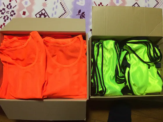 RUNBAKA一同で、安全対策としてなにかできることがないのか考えた結果、思い浮かんだのが参加者全員に「メチャクチャ目立つ蛍光ビブスを身に着けてもらう」ことでした。