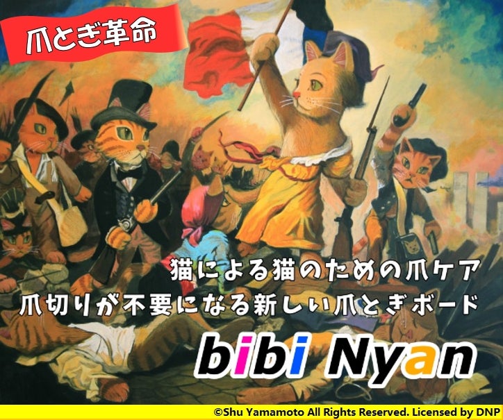 そこで、今回の配信に際しては、CAT ART 名画で世界的に有名な アーティストである Shu Yamamoto 先生の『民猫を導く自由の猫神』の使用を版権管理者の大日本印刷(株)様にお願いし、使用させていただくことができました。