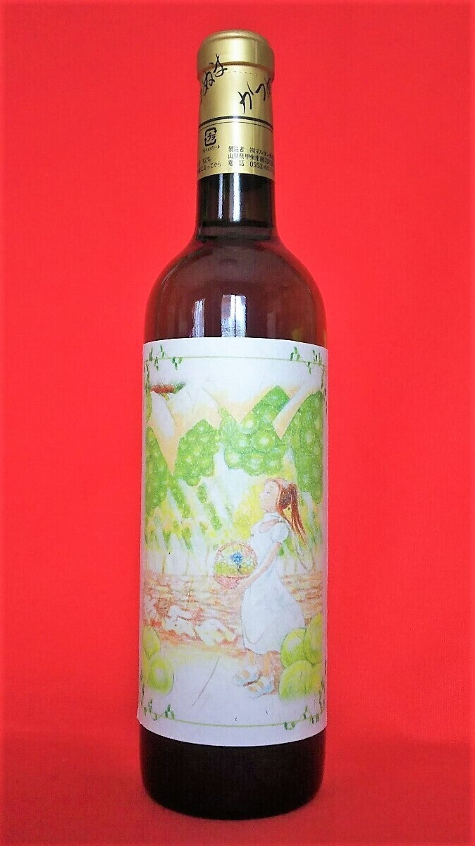 山梨県甲州市勝沼町の「青峰園(せいほうえん)」で、今秋に収穫したブドウ〈甲州〉を委託醸造して作った、オリジナルワイン!瓶のラベルには、秋の心地よい日差しを浴びながら、楽しくぶどう狩りをする白いドレス姿の女性を、丸一仙花が描きました。これに「かがみもち(夫婦太神楽) サイン入りブロマイド&千社札(非売品)」を加えた3点セットです。
