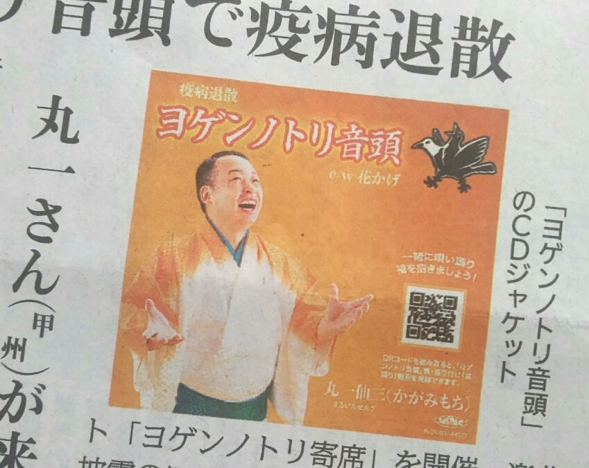 ジャケットや歌詞カード、チラシのイラストは、丸一仙花が描いています!作詞・作曲・振付すべて丸一仙三のオリジナル!疫病退散のシンボル「ヨゲンノトリ」をテーマにした楽曲を作り、みんなで歌い踊って福を招き、家内安全・商売繁盛・無病息災となるよう、幸せを祈ります!これに、ポスター ( B2サイズ)&「かがみもち(夫婦太神楽) サイン入りブロマイド&千社札(非売品)」を加えた大特典セットです。※カップリング曲は、童謡「花かげ」です。