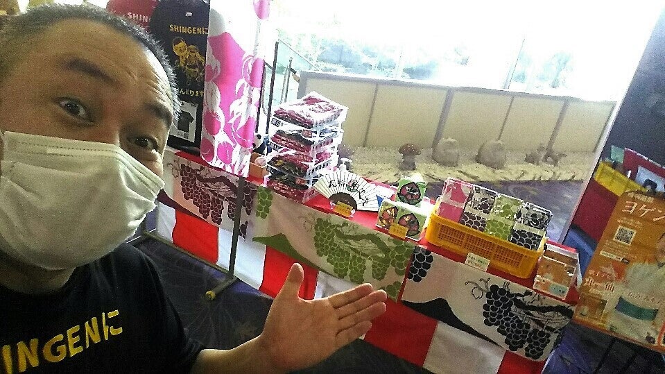 明るく行商で接客中!生きる為に急遽、ホテルロビーやクリーニング店駐車場などの場を提供してもらい、土産品の行商をして、細々と食い繋いでおります。昨年は農業、今年は物売り業で試行錯誤しながらの奮闘です。