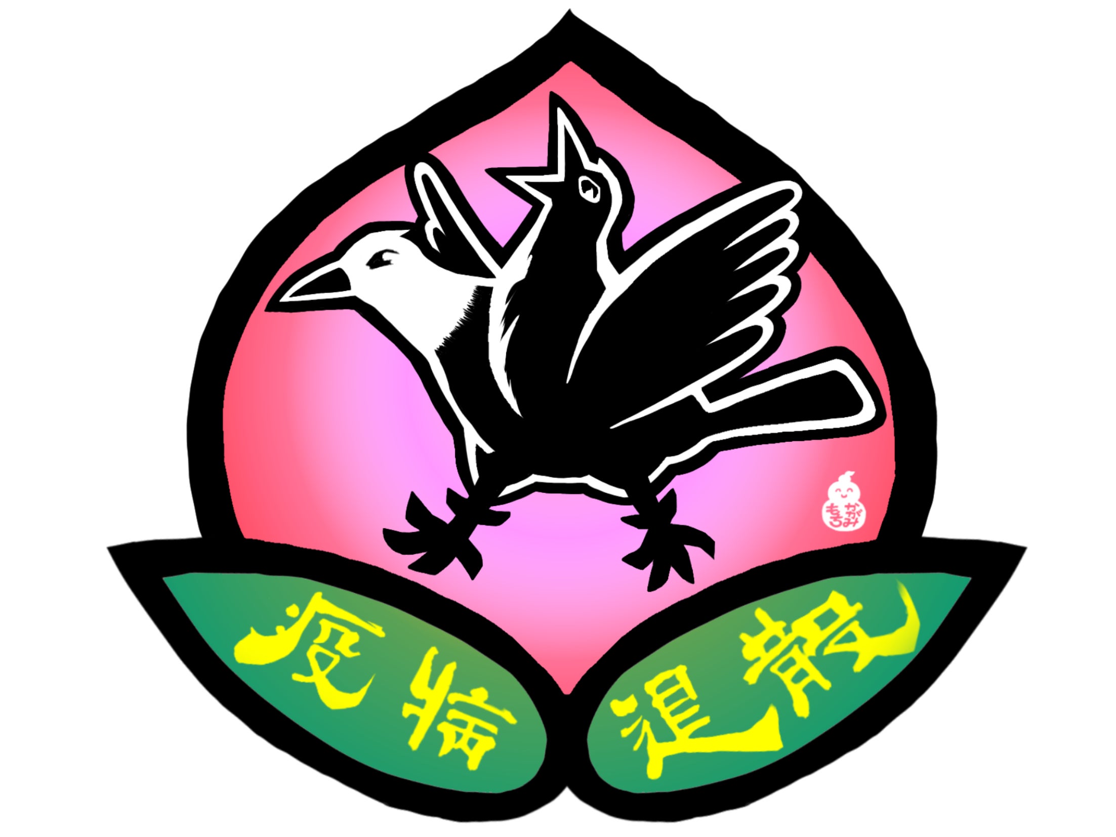 江戸時代の甲斐国(山梨県)の文献「暴瀉病(ぼうしゃびょう)流行日記」〈山梨県立博物館所蔵〉に、頭が二つの不思議な鳥が描かれ、疫病の流行を予言していたと伝えられています。民は難を逃れるためにその姿を仰ぎ祈りました。この「ヨゲンノトリ」と、邪鬼を払うといわれている縁起物の「桃」を合体!新型コロナウイルス退散への祈りを込めた、丸一仙花の自信作。玄関や車・バイク、ノートパソコンやタブレットなどに是非お貼りくださいませ。