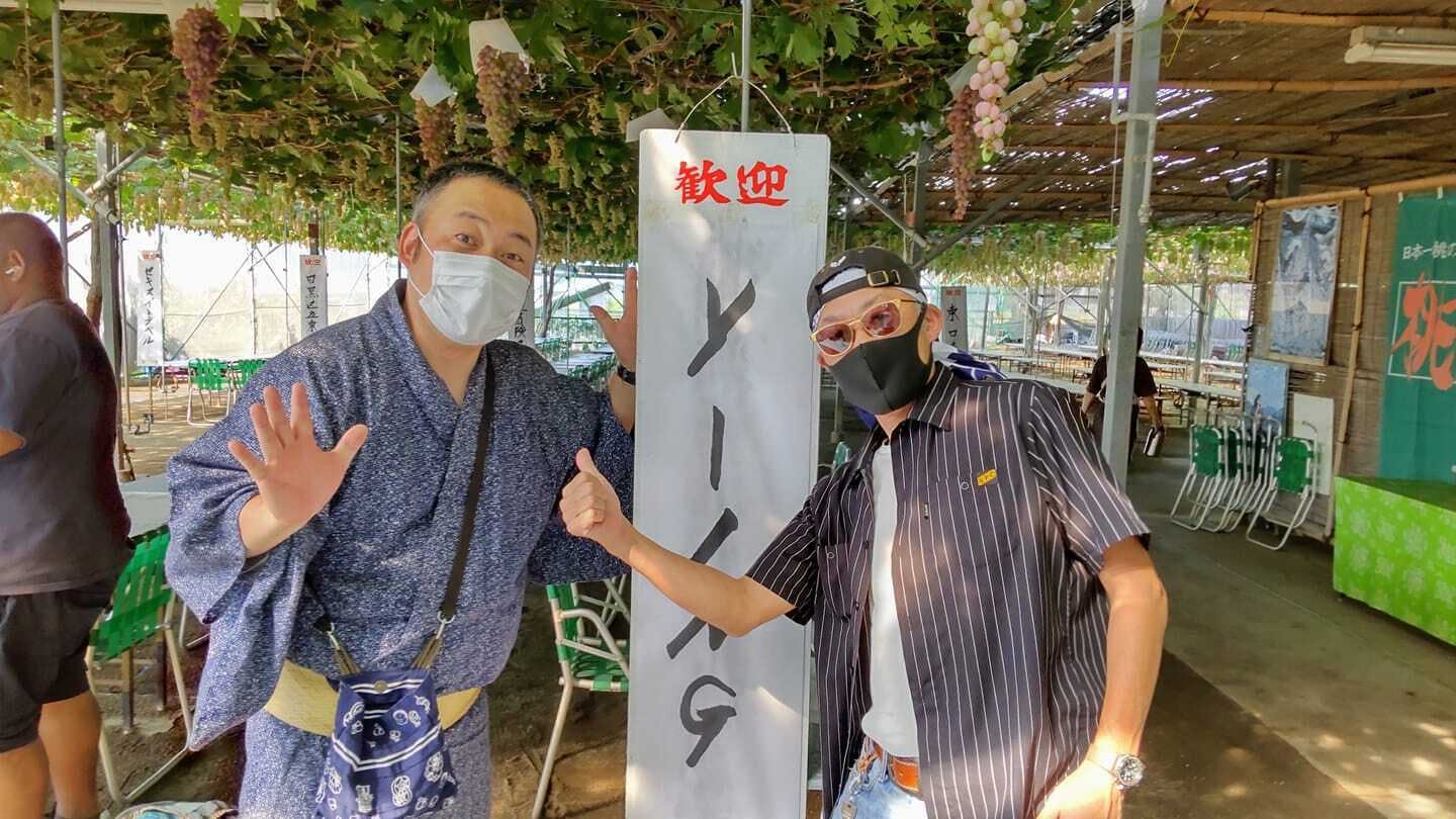 Y-ING(やまなし情報メディア研究会)さまにお招き頂きまして、たわわに葡萄が実る観光農園さんで、商売繁盛を祈り傘の曲芸の披露、疫病退散を祈り「ヨゲンノトリ音頭」を歌唱しました!