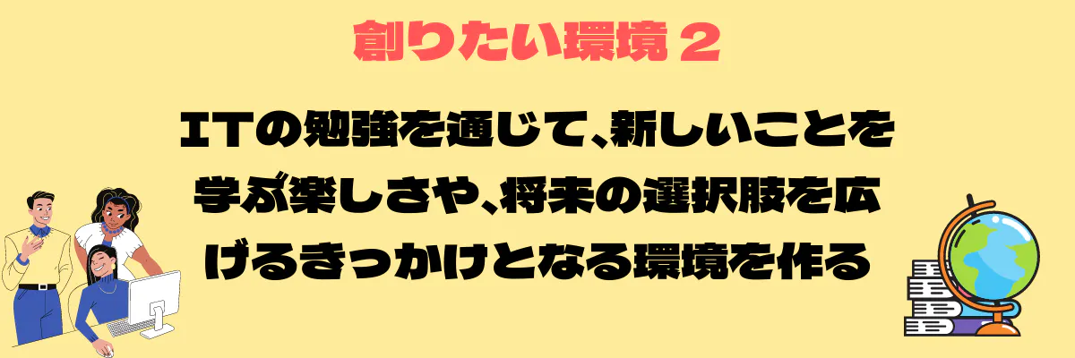②ITの勉強を通じて、新しいことを学ぶ楽しさや、将来の選択肢を広げるきっかけとなる環境を作る