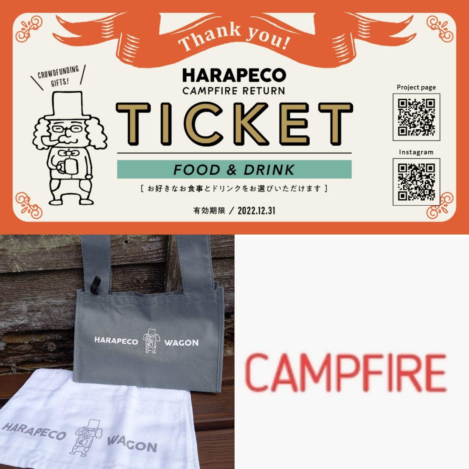 2022/01/30 10:06大変ながらくお待たせしました!:クラファンリターンの○飲食チケット○飲食チケット+ランチバック○飲食チケット+タオル○飲食チケット+ランチバック+タオル1月28日に発送完了しました。目算があまく時間がかかってしまい申し訳ありませんでした。キッチンカー製作に関しては、まずは車屋さんに車を探してもらっています!よく「キッチンカーはいつから?」「まだやらないの?」「他の人がもう始めてるけど?」こんな感じの声をかけてもらいます。いつから?→まだ未定ですまだやらないの?→残念ながらまだ出来ないのです他の人が…→他の人なので…ぼくが探してもらっているのは、1トン車のトラックで状態や走行距離などかなり程度の良い車に限定して探してもらっています。いろいろな価値観があるので個人的な価値観としては、長く付き合える相棒が欲しいのです!コロナ禍もあり中古車売買もかなり見通しがきかないらしく時間はかかりそうです。自分でどうにもならない事は悩んでも仕方ないので、ただ待ちます。進展ありましたらお知らせします!「飲食チケットについて」リターンの飲食チケットですが、有効期限が12月31日と印刷されていますが、来年1月末までに延長させていただきます。チケットの郵送が遅れてしまった為の処置になります。「冷凍カレーセットについて」機材が揃いましたのでこれから製造し郵送となります。一回の製造数、冷凍庫容量に限りがあるため出来次第順次発送致します。いましばらくお待ちください。「出張リターンについて」個別に連絡、打ち合わせになります。よろしくお願いいたします。やっとクラファンリターン前進出来ました!応援、協力いただいた皆様ありがとうございます!これからもよろしくお願いいたします。はらぺこワゴン 新井結喜 もっと見る感謝!