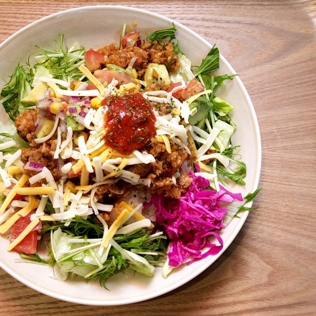 主な商品は、オリジナル日式カレーやほとんど野菜のタコライス、チキンオーバーライスや魯肉飯など「お米」を使ったメニューになります。