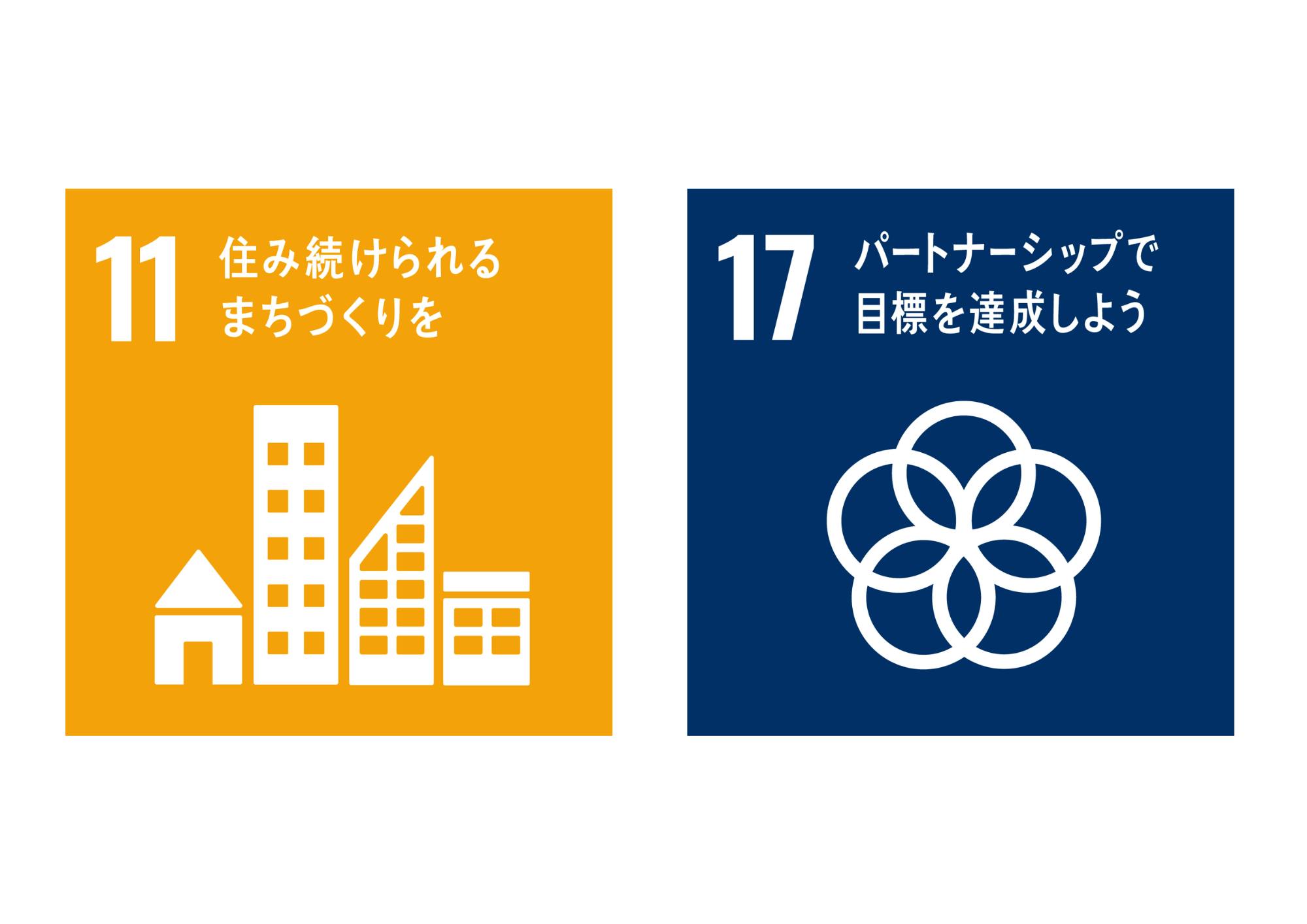 これらのことは、SDGsの目標と合致するところがあるため、僕たちはSDGsの「11.住み続けられるまちづくりを」と「17.パートナーシップで目標を達成しよう」を掲げます。