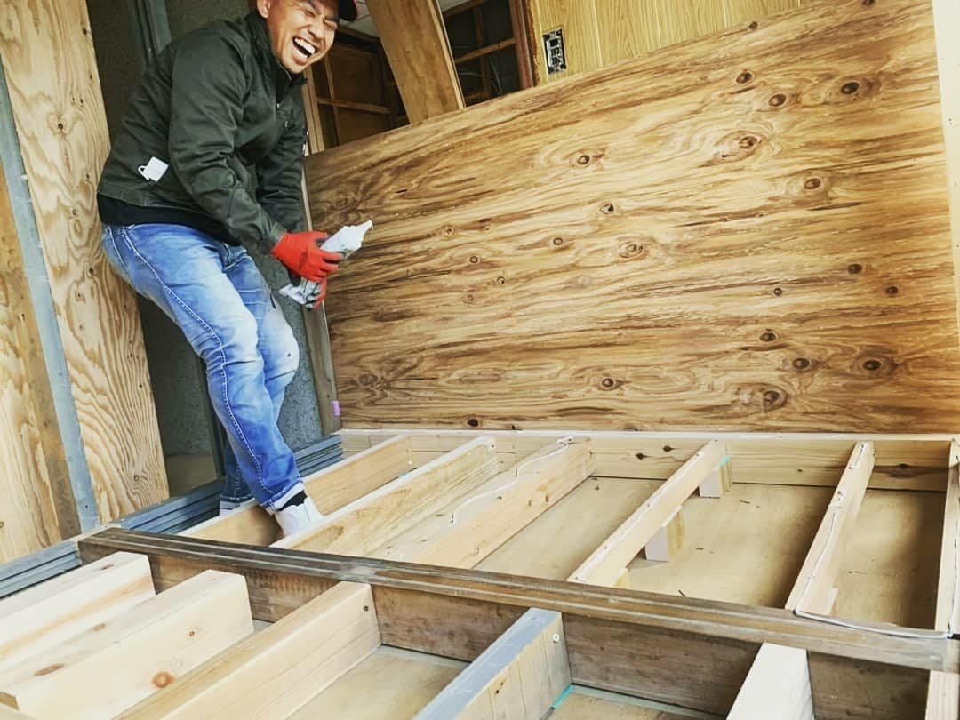 本日は、電気配線と2階宿泊部屋の床組みをしました!
