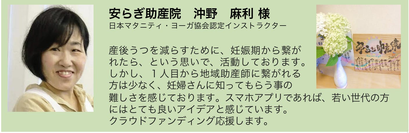 スマホアプリであれば、助産師同士が情報共有できるプラットフォームにもなり、大学に所属する研究者などから最新の情報をアップデートするなど、信頼性のあるバックアップ体制を築きます。その結果、開業助産師が自信をもって妊娠初期から育児期までの女性の心身のケアができると考えました。