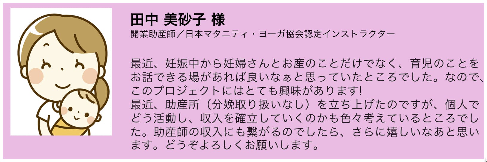 助産師は、出産の時だけでなく、妊産期から産後の女性に寄り添うことで様々な悩みの解決を手助けする専門家でもあります。しかし開業助産師の多くは、妊産婦さんやお母さんが来院されないと何もできず、悩みを抱える方々に繋がる手段をもたないことにとても歯がゆい思いをしています。