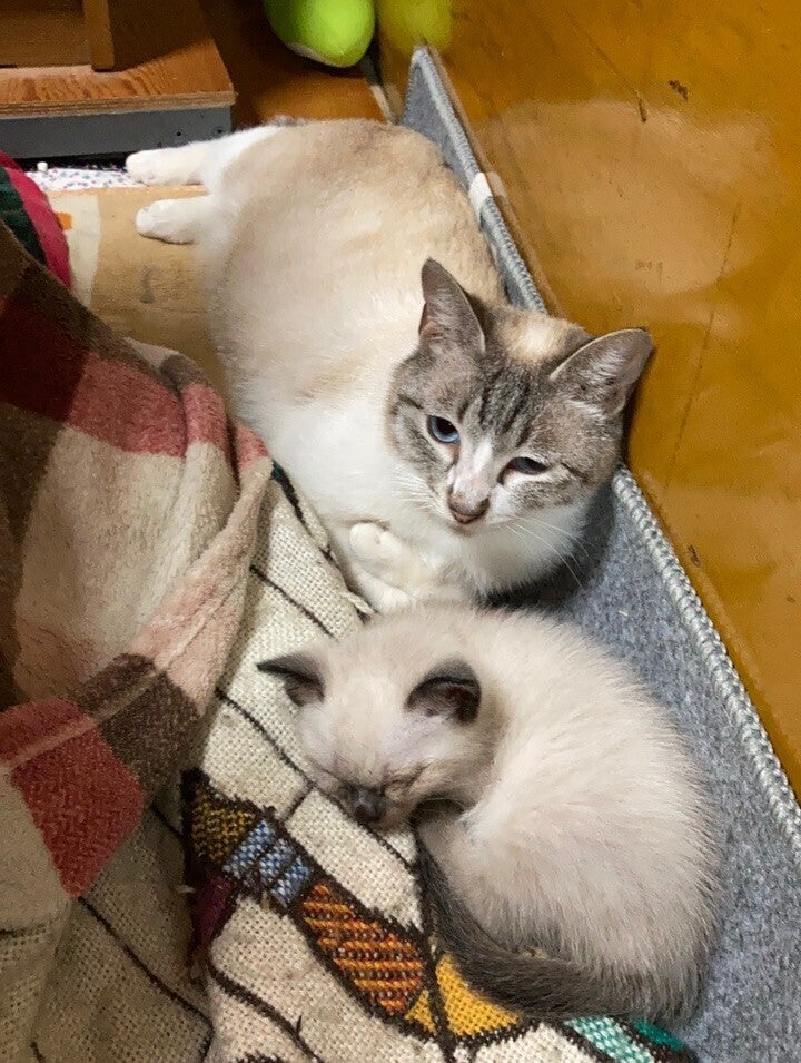 2021/10/20 13:40今日は現在保護している猫について紹介させていただきたいと思います。まずはプロジェクトの顔にもなっているこの2匹からです。名前はハナ(親・メス)とルン(子・オス)といいます。画像は保護して1週間ほど経過したころのもので、この時点でハナが推定2歳、ルンは生後1ケ月前後と病院で言われました。それから半年ほど経過した現在では、ルンはおもちゃで遊んだり、他の保護猫たちと一緒にじゃれあったりして毎日元気に過ごしています。母親のハナはおっとりした性格なのかいつも人目につかないところでのんびりしています。 もっと見る