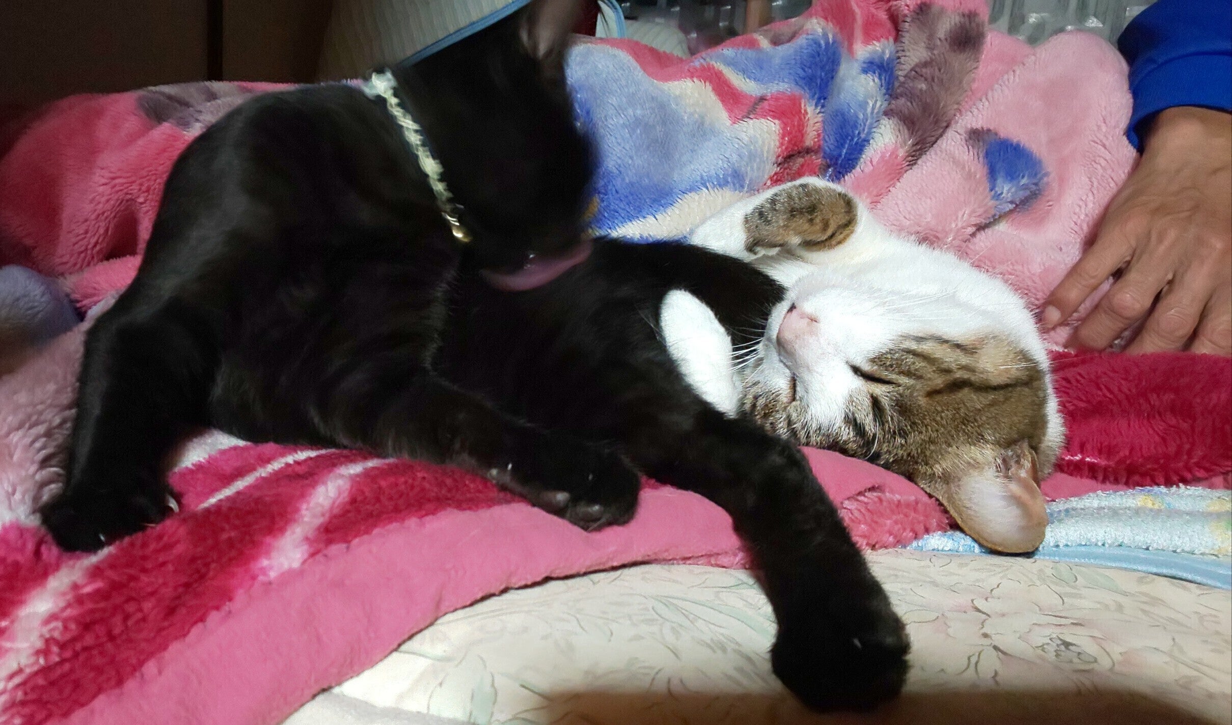 2021/11/03 23:58今回も保護した猫について紹介していきたいと思います。名前はクロスケ、2歳のオスです。私の職場にお客さんの後ろについて勝手に入ってきたのが彼でした。お客さんに聞いたところ「近所のコインパーキングからついてきた、そこに住んでいる野良猫ではないか」とのこと。当時は、その1週間ほど前に保護していたほかの黒猫が寿命で亡くなったばかりだったのですぐに保護を決めました。保護した当時はとてもやせており、何か病気にかかっているのではないかとも思いましたがそれからは順調に成長していき、今では一番下のルンの面倒をよく見てくれる兄貴分になっています。 もっと見る