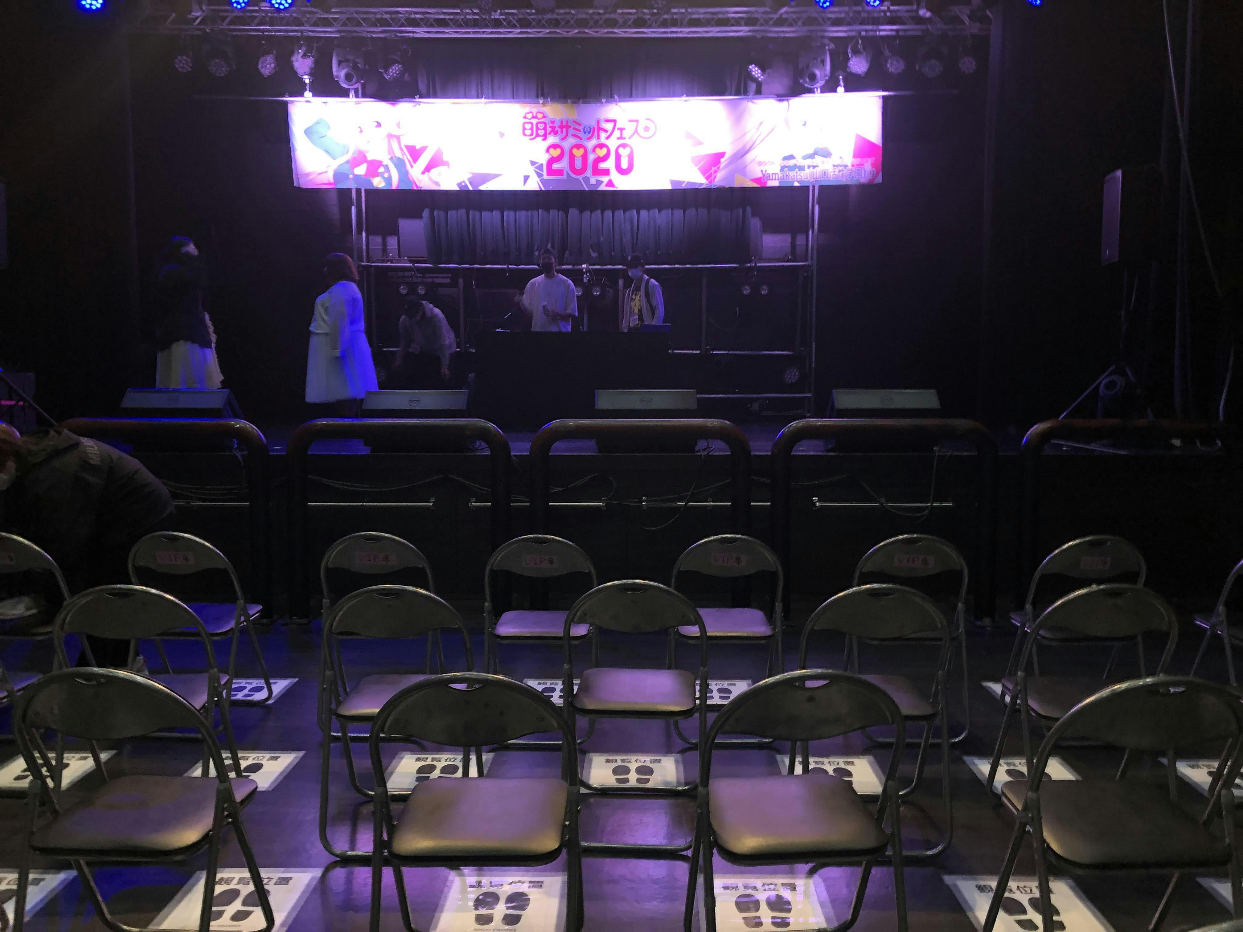 アイドルライブも座って声援も無し↓