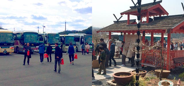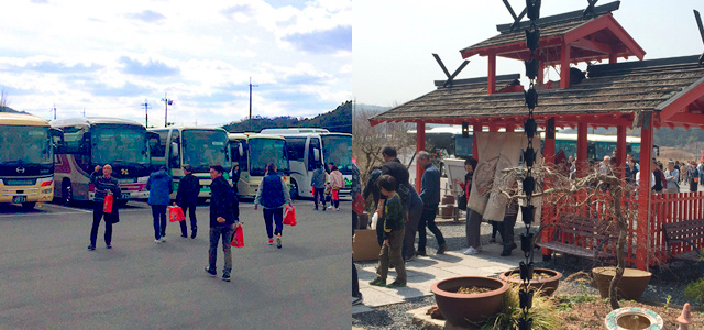 秋のハイシーズンになると、関西・東海地方はもちろん、日本全国からお客さまがご来店いただきます。店舗前には終日たくさんの観光バスが並び、収容人数700名超の店内は大変な賑わいとなり、お客様の“美味しい”笑顔で毎日満席となります。