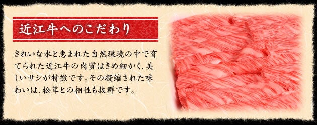 魚松が自信を持ってお勧めする近江牛。ご支援いただいた皆様には感謝の松茸(外国産)もおつけいたします。