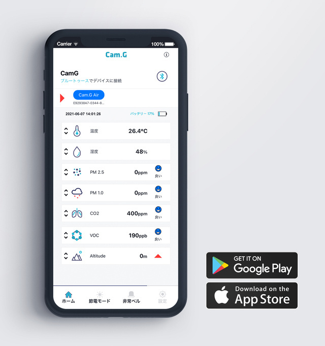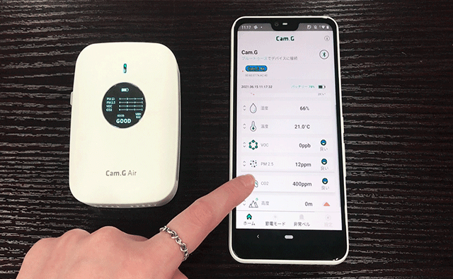 Cam.G Airは《二酸化炭素のモニタリング》することができます。