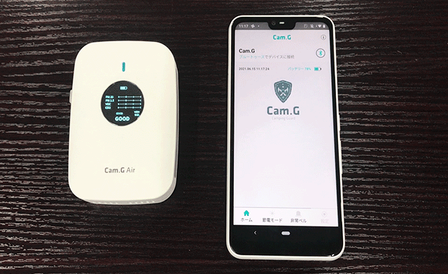キャンプなどのアウトドア活動や普段から空気品質のチェックができる空気質チェッカ―で、Cam.GとはCAMPING GUARD(キャンピングガード)の略字です。
