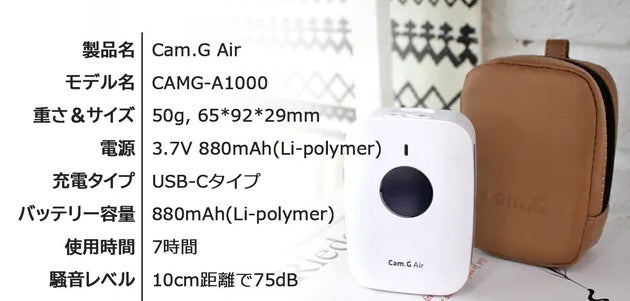 ※Cam.G Airは自社研究所で自社のテスト工程を通してテストを実施した製品です。