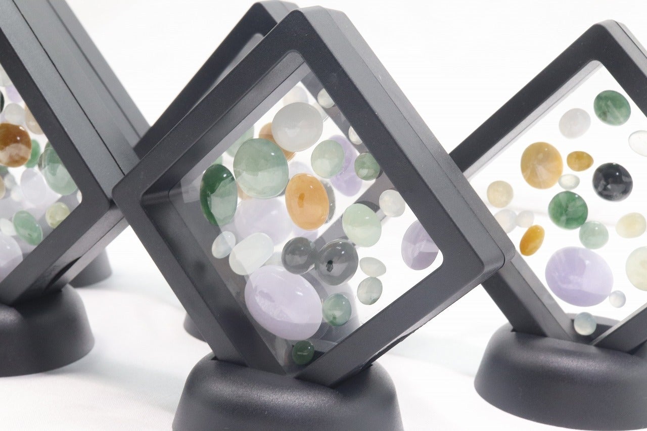 ■緑ヒスイ・赤ヒスイ・黒ヒスイ・黄ヒスイ・ラベンダーヒスイ・氷ヒスイなど、様々なカラーの天然本翡翠ルースを詰め合わせたパックです。