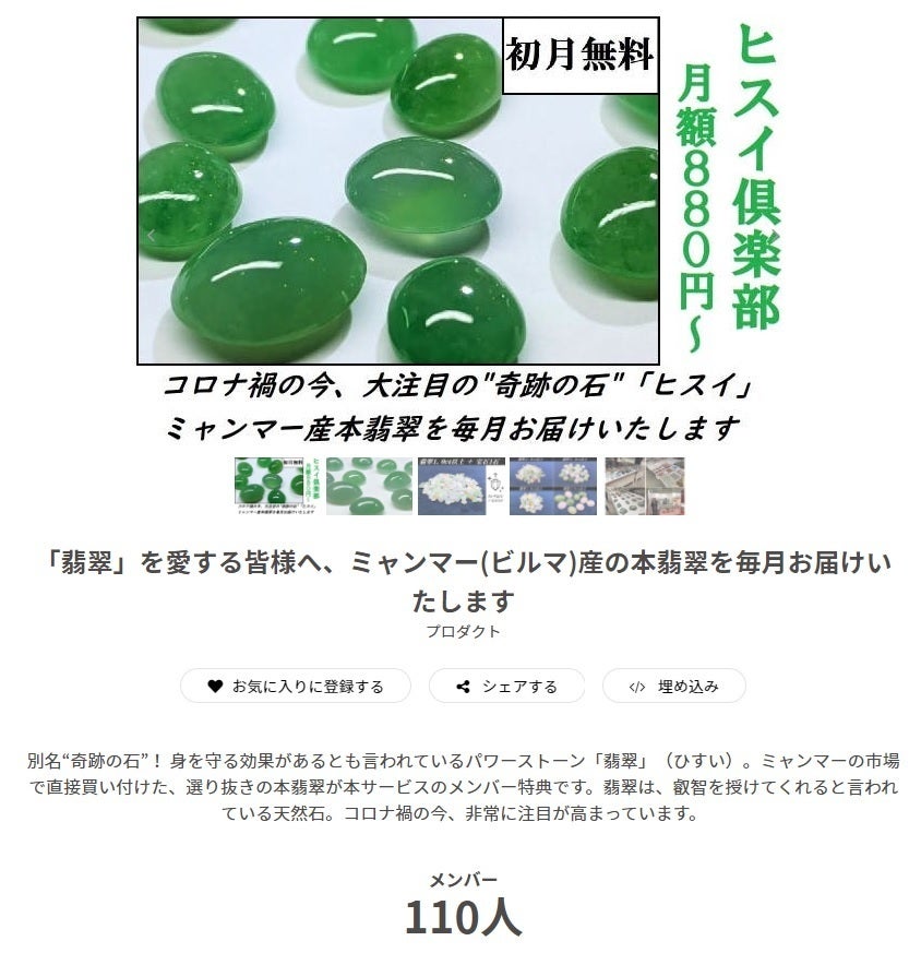 こちらのサロンは翡翠が毎月届くコミュニティです。