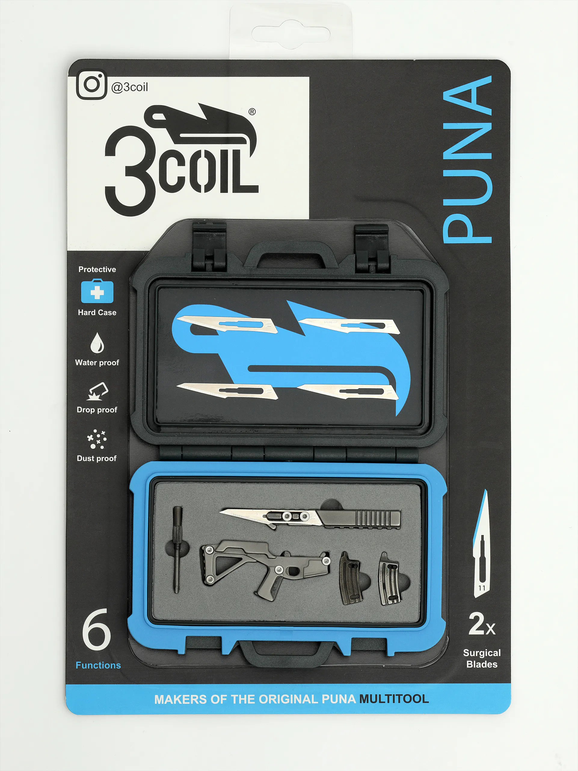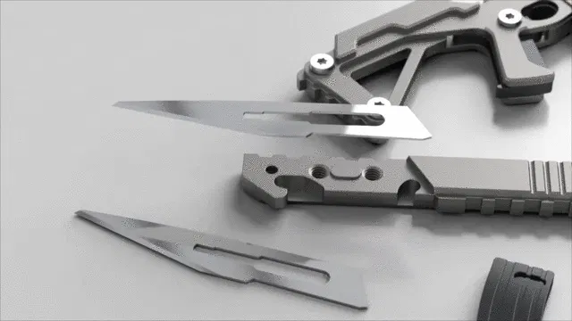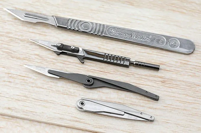 上の写真の一般的なメスの刃とは異なり、3COILのすべてのナイフは折りたたんだり、刃を安全に仕舞えるため、ポケットに入れても安全です。