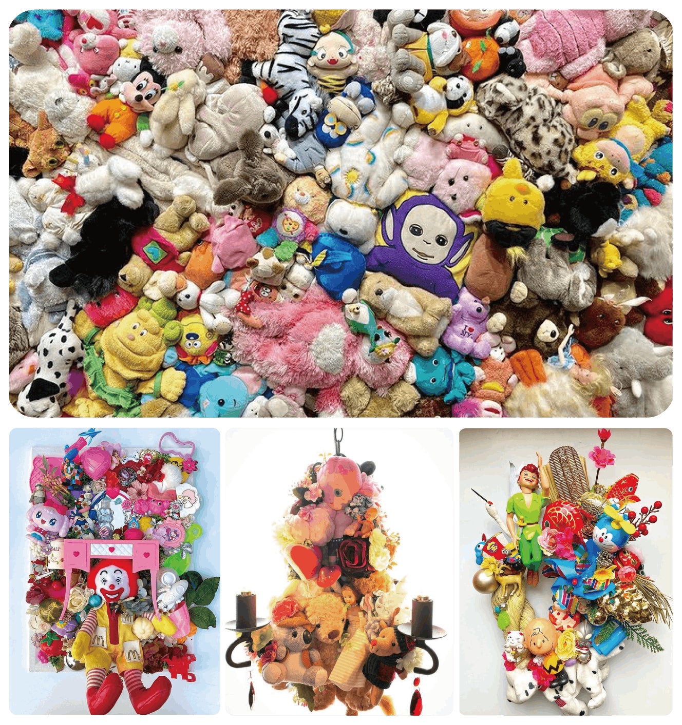 シャンデリアアーティスト<KIM SONGHE>が、 あなたのぬいぐるみや、おもちゃを用いて、キムソンヘの代表作「Dools chandelier」「Dools chair」「Junk Collage art」「KIMダルマ」を制作!!