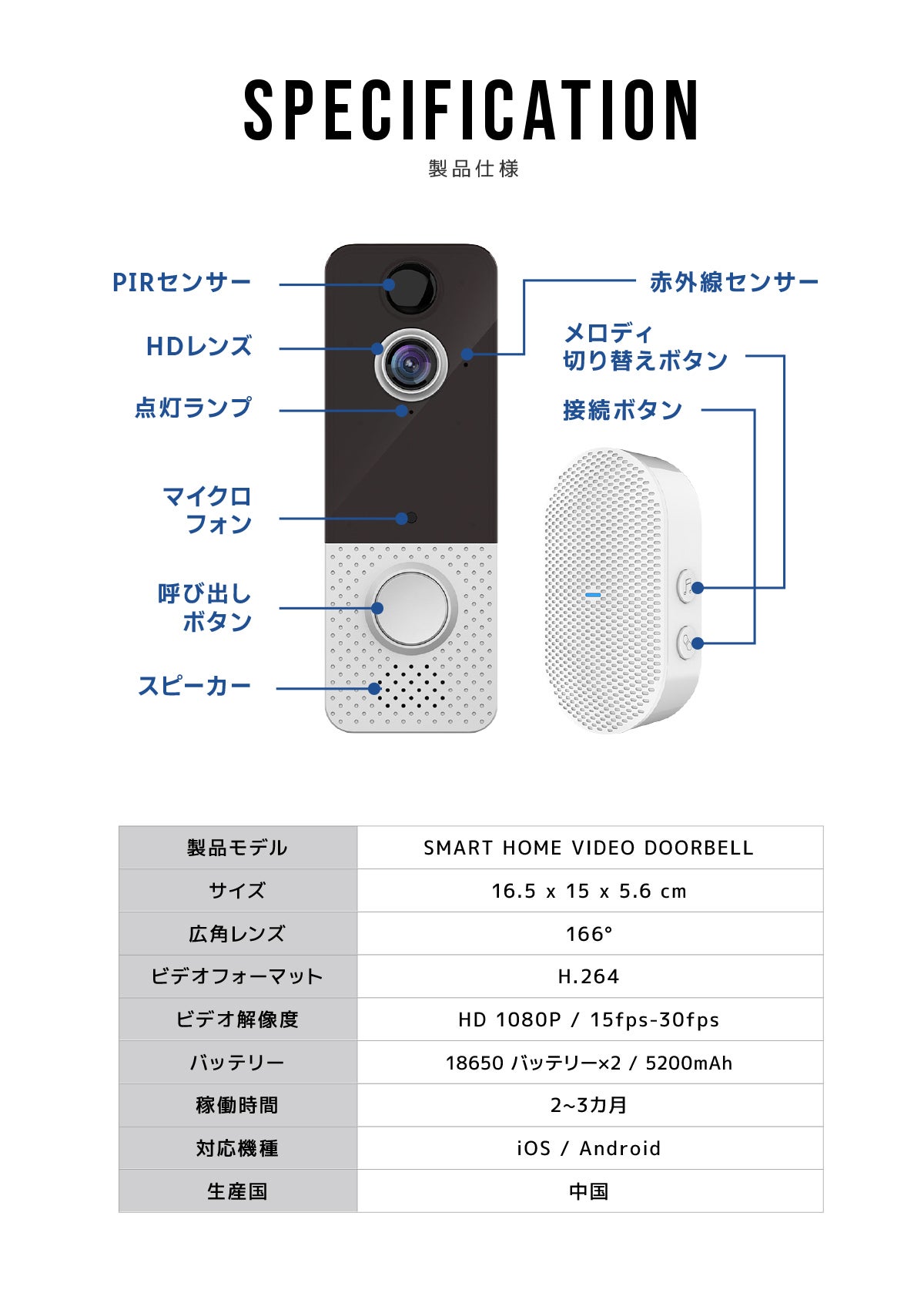 そんなアナタに「SMART HOME VIDEO DOORBELL」があれば、留守でもスマホで