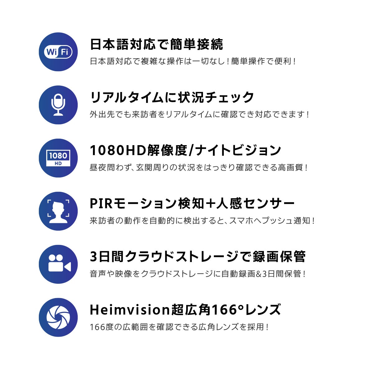 超広角166°レンズ採用:166度広角カメラが搭載され、玄関周りの状況をしっかり確認できます。