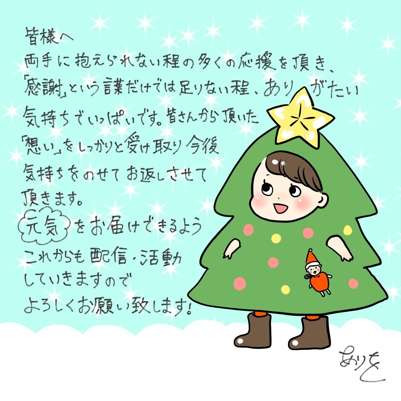 活動報告が大変遅れてしまい、申し訳ございません!ありちょんです。先日Instagramではご報告させていただきましたが、皆様の応援のお陰で、無事プロジェクトが終了いたしました。ご支援はもちろん、たくさんの暖かい応援コメントをいただきました。私たちの宝物です!一つ一つ、漏れなく読ませていただき本当は皆様に個別にメッセージ差し上げたいのですが...想像以上の数に対応しきれていないのが現実です。本当にごめんなさい。その代わり、リターンで全力でお返しさせていただきたいと思っています!そんなこんなであたふたと必死にリターンの準備や動画制作諸々をしておりまして、CAMPFIREでのお礼・活動報告が遅れてしまいました。この場を借りて、お詫び申し上げます。申し訳ございませんでした。「いつ頃リターン品は来るんだろうか?」と不安にさせてしまっているかもしれないので、今一度リターンスケジュールについてご連絡いたします。【リターンの予定について】※複数点ご支援いただいた物については、まとめて発送させていただく予定です※お届けが早まる場合がございます[ 2月中にお届け ]・ステッカー4枚セット・リターン不要支援 A -ありちょんメッセージ付き-・リターン不要支援 B -2人からのメッセージ付き-・手ぬぐい -くりひろい-・手ぬぐい -ぷぅ-・トートバッグ -ぐぬぬ-・街用ロングTシャツ -チャンネルロゴ-・街用ロングTシャツ -みんなともだち-・オリジナル似顔絵イラスト -お急ぎ便-・コミュニティ会員証[ 3月中にお届け ]・zoom 1on1 お喋り・オリジナル似顔絵イラスト -お急ぎ便-・登山コミュニティご招待 ( 3/1 )[ 5月中にお届け ]・オリジナル似顔絵イラスト -まったり便-[ 7月中にお届け ]・オリジナル似顔絵イラスト -ゆったり便-[ 10月までにお届け ]・山頂ビデオメッセージ・山旅の思い出絵手紙何かご質問等がございましたら、以下までご連絡くださいませ!arinco100.mt@gmail.com今後もプロジェクトの進捗や、リターンの進捗・発送についてコンスタントにご報告させていただきます!引き続き、よろしくお願いいたします!