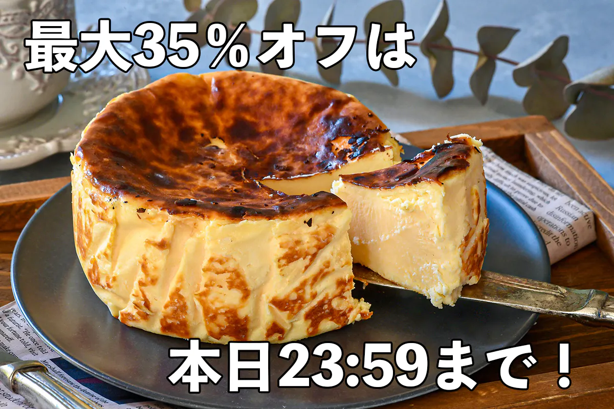 熟成バスクチーズケーキ、割引購入は本日23:59まで!