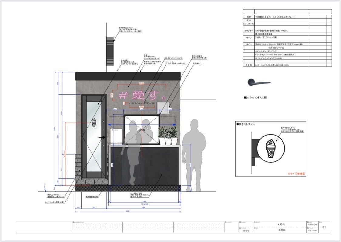 イメージは、皆がきて笑顔になれるような可愛いソフトクリーム屋さんです。